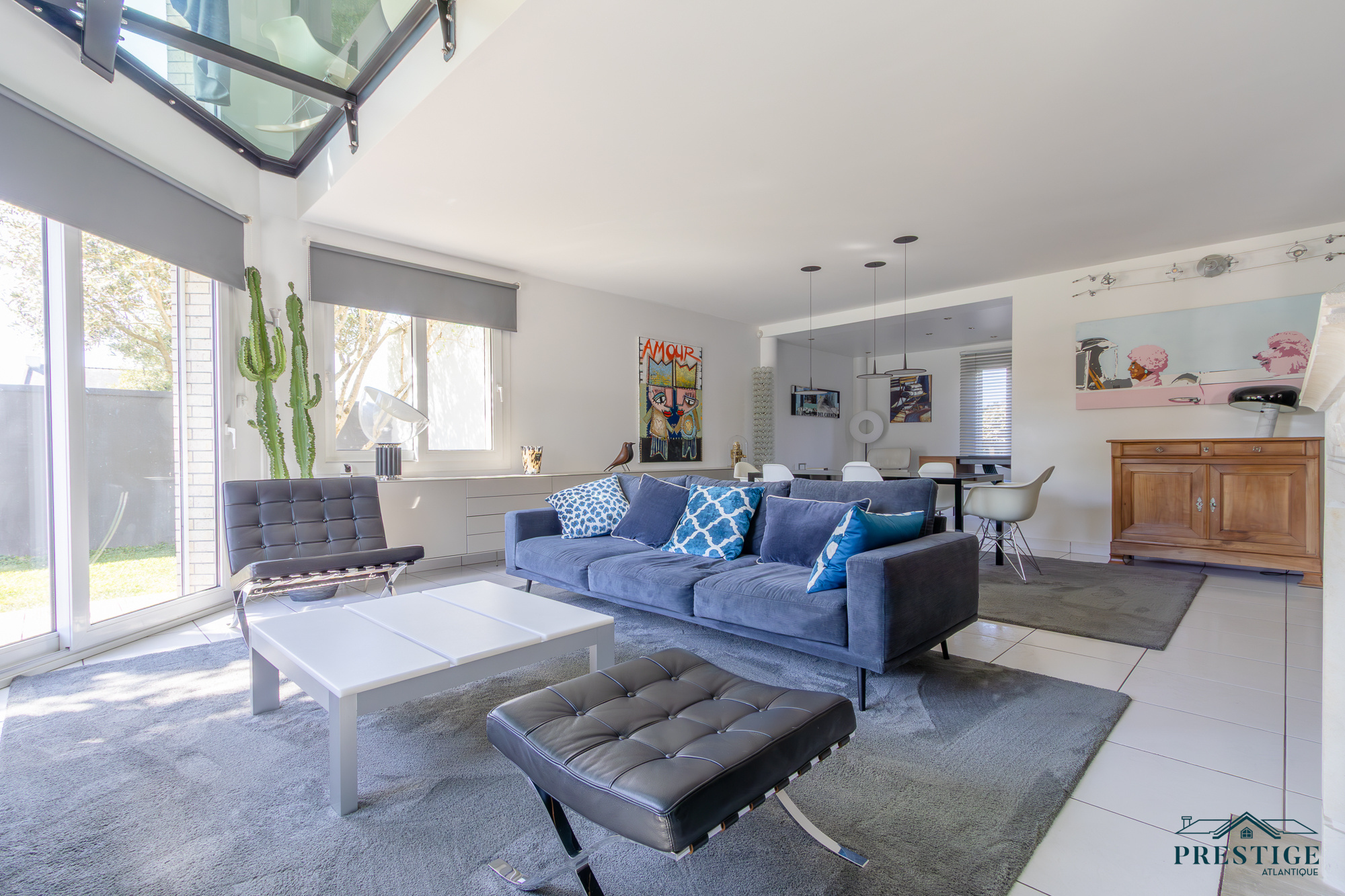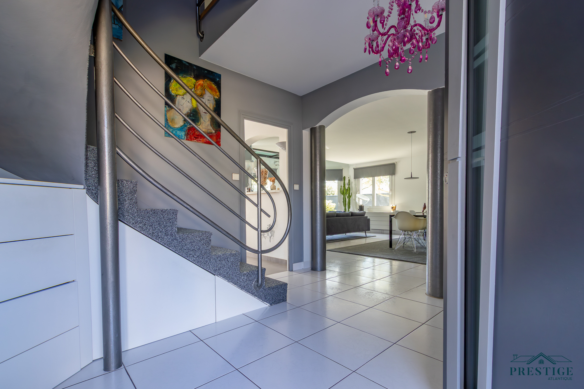 EXCLUSIVITÉ - PRESTIGE ATLANTIQUE. Aux portes de Nantes et à proximité du centre bourg de Sainte-Luce sur Loire, cette maison contemporaine édifiée sur deux niveaux, aux prestations soignées et à l'agencement de qualité dispose de 201 m2 habitables. L’entrée s’ouvre sur une vaste pièce de vie lumineuse, agrémentée d’une cuisine entièrement aménagée et équipée, le tout ouvert par de larges baies vitrées donnant accès à une terrasse avec vue imprenable sur une piscine chauffée, effaçant harmonieusement les frontières entre intérieur et extérieur. Le Rez-de-chaussée offre une vraie vie de plain-pied avec un second salon ouvert sur le jardin pouvant facilement devenir une chambre ou une suite parentale selon vos besoins. Un bureau complète ce niveau. A l'étage, un palier sublimé par un plancher de verre distribue trois chambres dont une magnifique suite parentale avec dressing et salle de bains privative. Une salle d’eau vient parfaire cet espace nuit. Édifiée sur une parcelle close et joliment arborée de 650 m2, deux garages attenants dont un avec une mezzanine ainsi que deux places de stationnement donne une touche finale à l'ensemble. Ce bien allie avec élégance confort, modernité et une qualité de vie des plus idéales. Les informations sur les risques auxquels ce bien est exposé sont disponibles sur le site Géorisques http://www.georisques.gouv.fr. Prix de vente 871 500€ FAI dont 5% d'honoraires agence à la charge de l'acquéreur soit un prix net vendeur de 830 000€. Prestige Atlantique (RCS. Saint- Nazaire 897 587 946) 02 40 21 91 13.