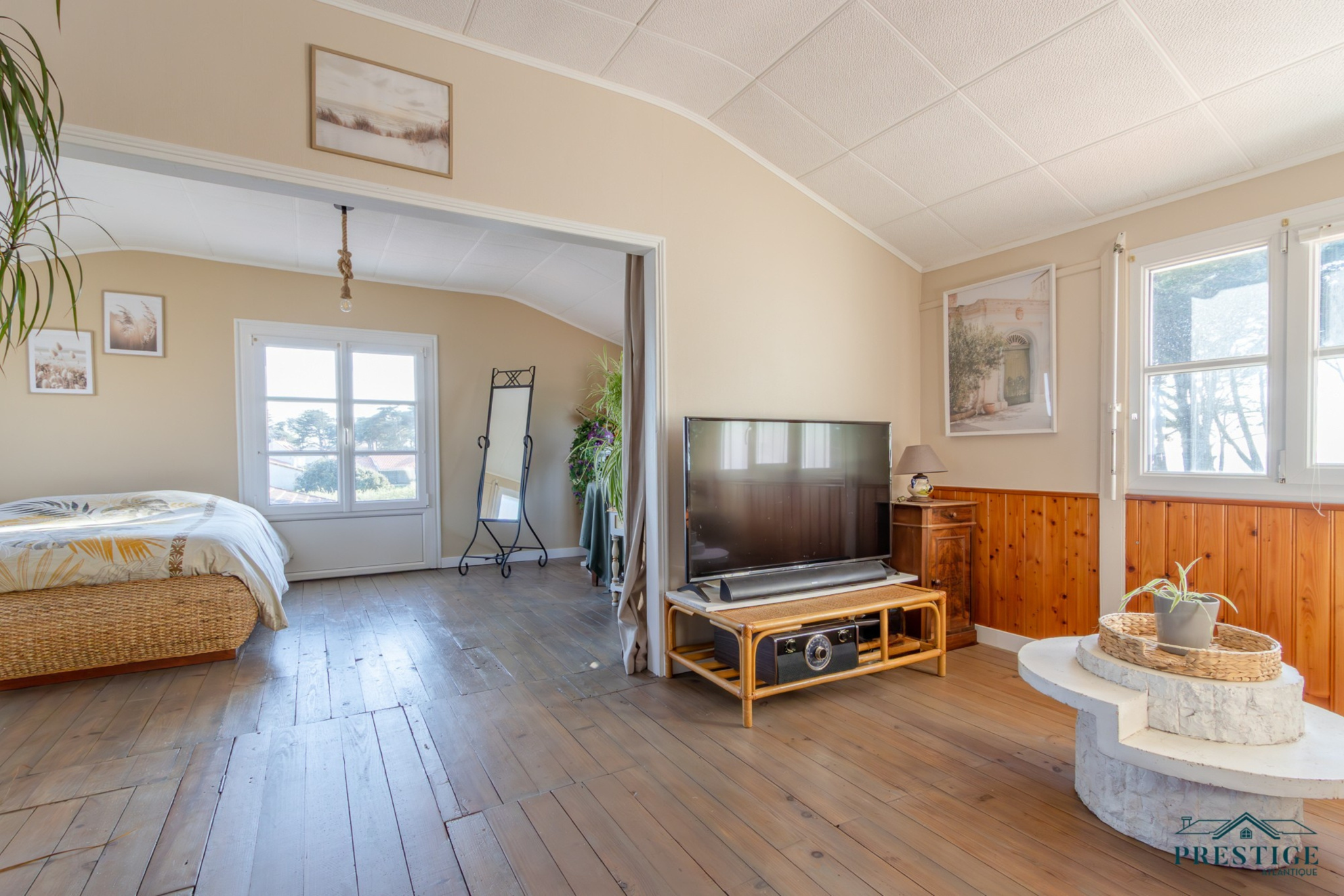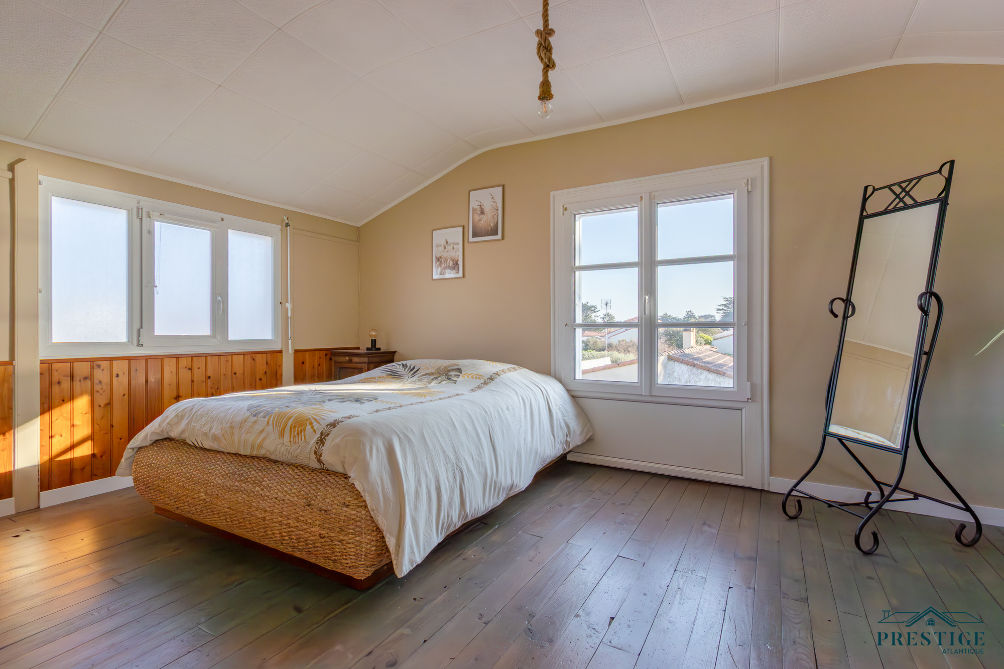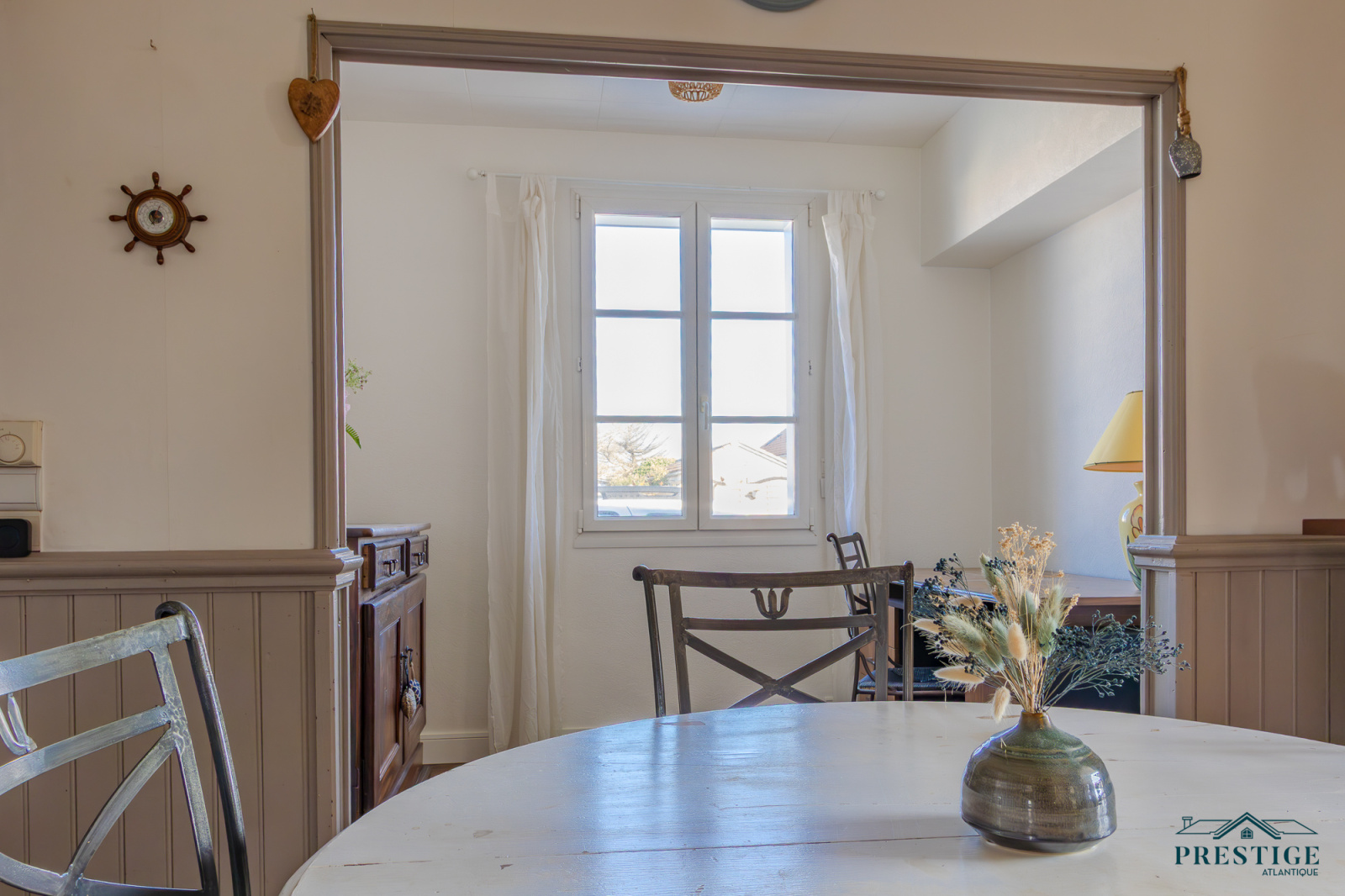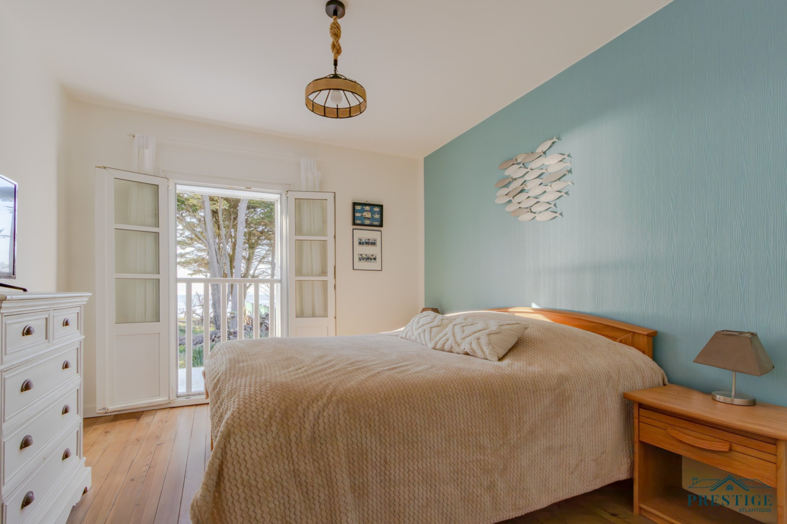 EXCLUSIVITÉ - PRESTIGE ATLANTIQUE. Dans un cadre préservé au milieu des pins maritimes cette maison face mer dispose d'une superficie habitable de 150 m². Le hall d'entrée dessert une double réception comprenant une cuisine aménagée et un séjour au parquet ancien agrémenté d’un poêle à bois, l’ensemble s’ouvrant sur une véranda offrant un panorama exceptionnel sur l’océan. Une chambre et une salle d’eau confirment la vie de plain-pied. À l’étage, un palier mène à deux chambres dont l’une profite d’un espace lecture et bureau, ainsi qu’à une salle de bains, le tout bénéficiant de ce splendide décor maritime. Édifiée sur une parcelle close et arborée de 2 490 m², un atelier, un carport et un garage donnent une touche finale à ce bien. Une opportunité signée Prestige Atlantique : une adresse d’exception où le rythme des marées et le bruit des vagues accompagnent chaque instant, face à un horizon à couper le souffle. “Les informations sur les risques auxquels ce bien est exposé sont disponibles sur le site Géorisques http://www.georisques.gouv.fr”. Pour plus de renseignements ou pour organiser une visite privée, contactez-nous sans plus attendre, PRESTIGE ATLANTIQUE 02.40.21.91.13. Prix de vente 750 000€, les honoraires d'agence sont à la charge vendeur. (RCS. Saint- Nazaire 897 587 946).